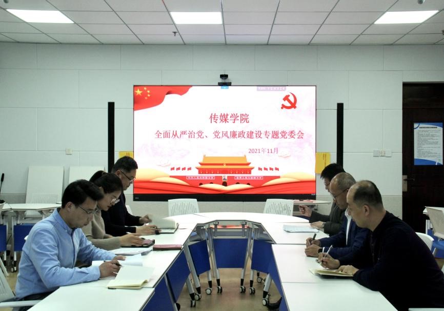 党委理论学习中心组于JC813召开全面从严治党、党风廉政建设专题党委会。学院党委书记王宏杰、院长王焕景、党委副书记田荣林、副院长赵可云、教职工党支部书记徐振国、辅导员商秀英集体学习并进行讨论,会议由王宏杰主持。