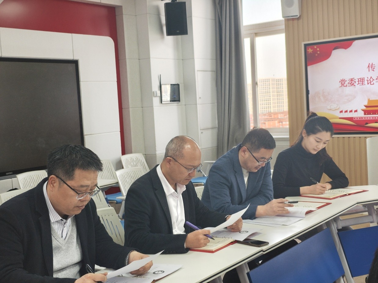 党委理论学习中心组全体成员参与学习并进行讨论,学院党委书记田维柱担任领学人。