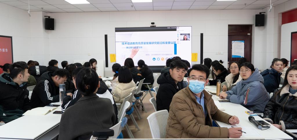 1217日上午,麻豆视频av 在C813会议室召开题为“技术促进教育高质量发展研究前沿和重要议题”的学术报告。此次报告邀请到了《现代教育技术》杂志社编辑部焦丽珍主任担任主讲人,报告会在腾讯会议进行。麻豆视频av 院长王焕景、教育技术学研究生导师徐振国参加会议2020级、2021级教育技术学专业研究生在会议室集体学习,会议由徐振国副教授主持。