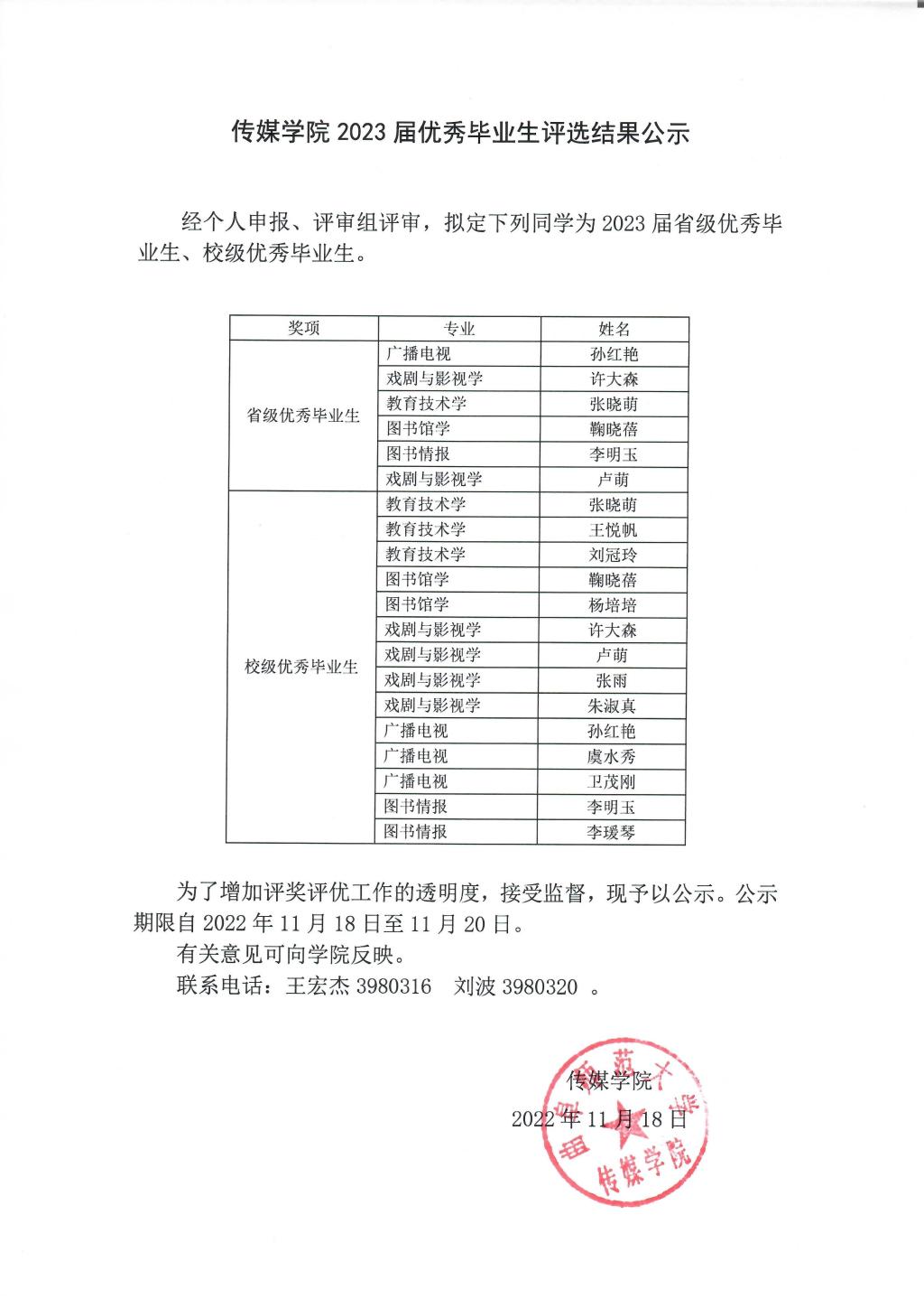 麻豆视频av 2023届优秀毕业生评选结果的公示公告