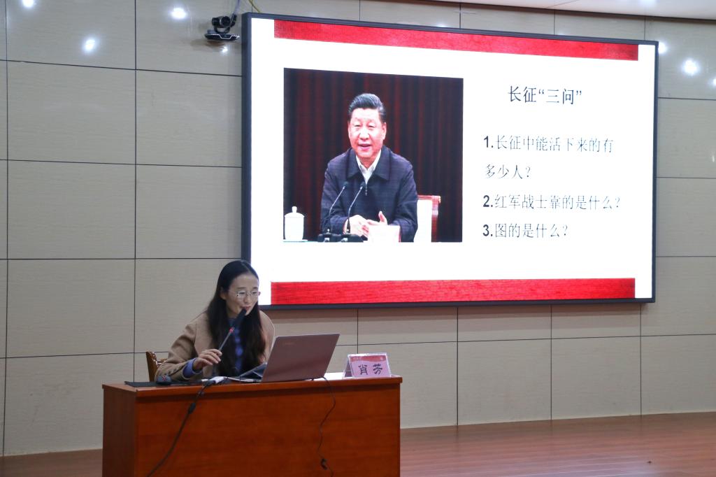 讲座伊始,肖芳从2019年的特殊性出发,由习近平总书记的“长征三问”引出“坚守马克思主义信仰,勇担民族复兴大任”的主题。讲座中,她围绕马克思主义信仰之光、马克思主义信仰之困、马克思主义信仰之路三个方面进行了深刻的阐释。她表示,马克思主义信仰是中国共产党由苦难走向辉煌的内生动力,是国家、政党、青年的前进动力。她指出,如今马克思主义信仰遇到的困难主要是来自网络新媒体的压迫、来自历史虚无主义的冲击和意识形态激烈的斗争。针对坚守马克思主义信仰之路,她提出大学生要树立正确的历史观,要自觉坚持中国共产党的领导和社会主义制度,要加强理论学习,夯实信仰,把牢马克思主义信仰之路。