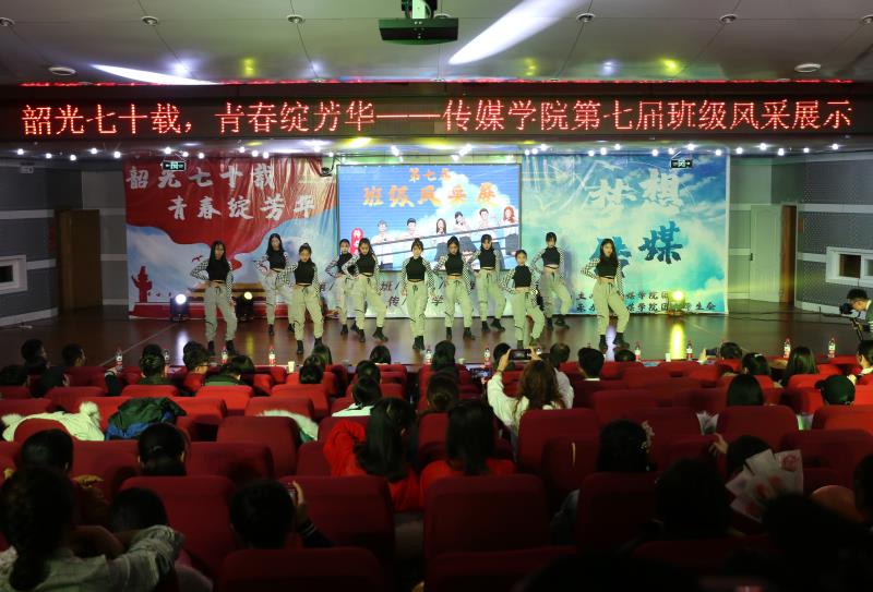 第七届班级风采展示拉开帷幕。新闻一班的《奋进七十载,新一话变迁》,用新闻联播的方式连接起了新中国成立来的各个时代,展现了新中国七十年来重大变迁,诉说着青年们的家国情怀和历史担当。为夺“导演”青睐,新闻二班的少年们各出奇招,齐聚电影《我和我的祖国2》选角现场,讲述了几代人传承的共同记忆,诉说着对祖国的爱恋。教本二班带来的《金陵十三钗》,将观众带回那个风雨飘摇的年代,引得现场观众唏嘘不已。小品《九儿》讲述了巾帼英雄九儿的传奇故事。教本四班带来的《教四传奇之不息之河》,以校园恋爱为切入点,表现了当代大学生间的责任与担当,创意性十足。新闻三班以爱情之名开启幻想旅程,通过幻想旅程,展示优美舞姿,体现班级风采,以青春姿态演绎《奔跑》。教本一班通过表演阐释关于爱情的思考,用《夜空中最亮的星》向懵懵懂懂的青春爱情致敬。回忆过往,教本三班追溯曾经的梦想,现在与过去,他们用搞笑的情景剧一一展现,真情演绎《无名之辈》的倔强。“穿”越七十年的记忆,数字媒体艺术班则采取以双人相声为主线、穿插情景剧的形式,时空交错,通过时装的变迁浓缩中国七十年的飞跃,以此敬畏《最好的时光》。最后,19级班团共同带来的《如果我们不曾相遇》为本次班级风采展示画上圆满的句号。活动现场,气氛浓烈,观众情绪高涨,形成良好互动。经过比拼,数字媒体艺术班、新闻二班荣获一等奖,教本二班、三班、四班获得二等奖,新闻一班、三班与教本一班获得三等奖。