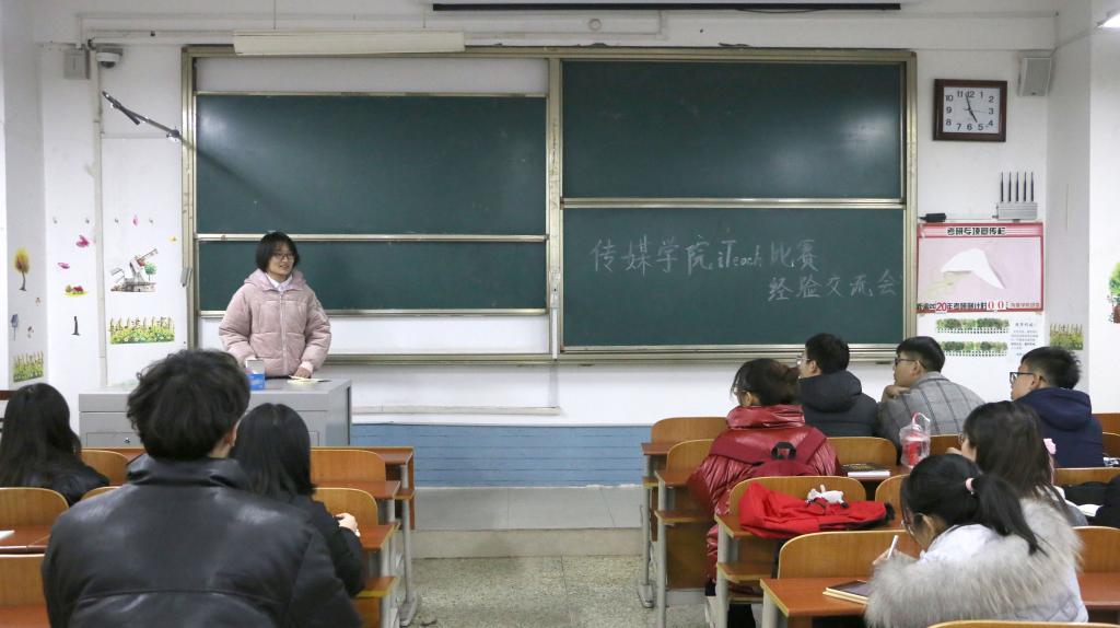 交流会开始,邵长青介绍了本次比赛的获奖情况,重点强调了作品质量的重要性和答辩环节的注意事项。随后,张静、麻妮莎、梁炜怡、李俐依次上台交流经验,结合自身参赛经历,从选题、组队、比赛心态、平时积累等方面分享了各自的心得体会。主讲人们强调,赛前应积极与指导老师进行交流,确定新颖、有创意的选题;组队时选择优势互补的队友,注意团队合作;平时还应重视专业课知识的学习和比赛经验的积累。最后,主讲人们分享了一些搜集素材的渠道,并就自身出现过的问题给予同学们切实可行的建议,鼓励同学们积极参加各项比赛。