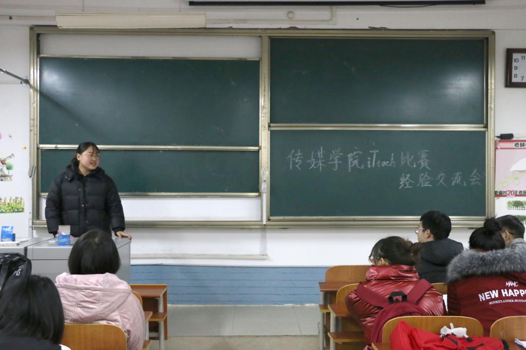 学生会副主席邵长青主持,“iTeach”大赛获奖队伍代表张静、麻妮莎、梁炜怡、李俐担任主讲人,部分18、19级教育技术学专业学生参加。