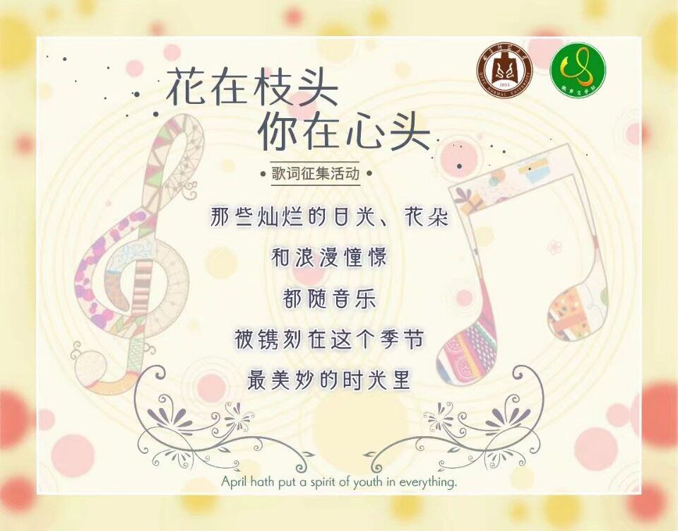 暮春将至,由潮声文学社举办的“花开枝头,你在心头”的原创歌词填写活动于4月22日落下帷幕。在本次活动中,同学们热情参与、积极投稿,以超高的创造力和饱满的热情给大家带来了许多原创歌词,展现出了曲园学子的另一番风采。
