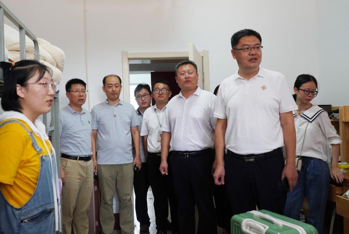 党委书记王宏杰、党委副书记徐正伟、副院长赵可云、院长助理王焕景、辅导员张守荣、张洪孟、乔希、刘扬帆一同深入2020级新生宿舍看望慰问,为新生送去温暖与关怀。