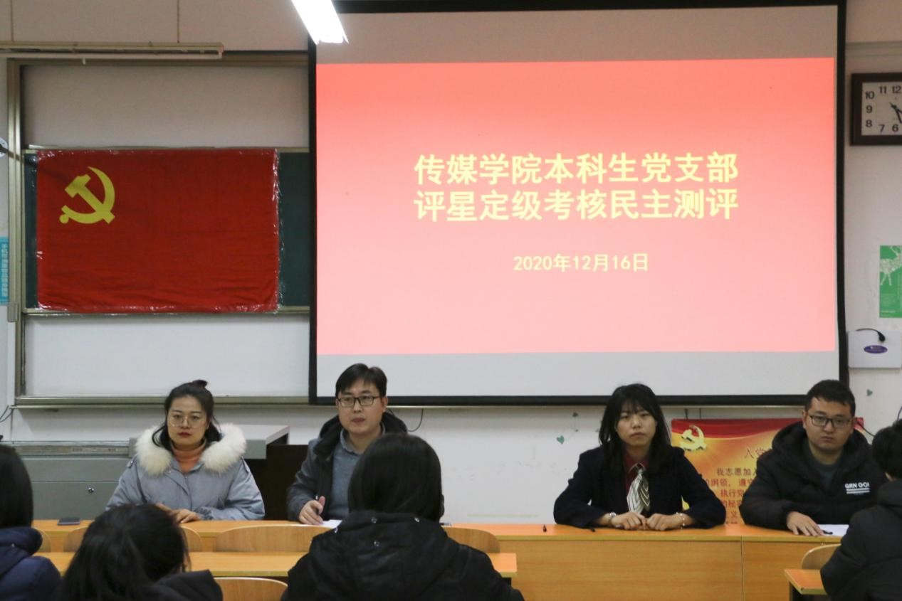 于JC306召开本科生党支部评星定级考核民主测评大会。本科生党支部委员绪慧敏、商秀英,辅导员刘扬帆出席会议,学院本科生党支部全体成员、2018级与2019级部分入党积极分子参加会议。会议由麻豆视频av