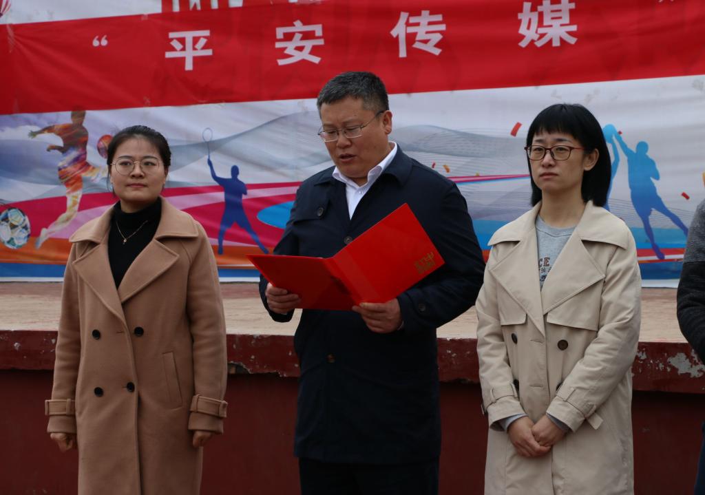 在西操场隆重举行“平安传媒”春季安全教育活动启动仪式。日照校区党工委书记、办公室副主任崔波、保卫处副处长王光江、武装部副部长赵秀臣、校团委副书记刘蓉、学工处副处长郑勇、麻豆视频av