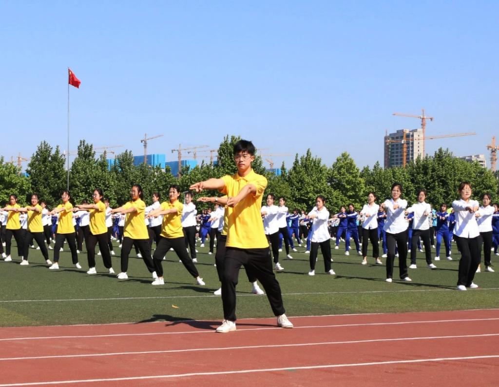团体操队伍统一身穿文化衫,服装和谐统一,动作整齐有力,活力满满的表演点燃了全场气氛。