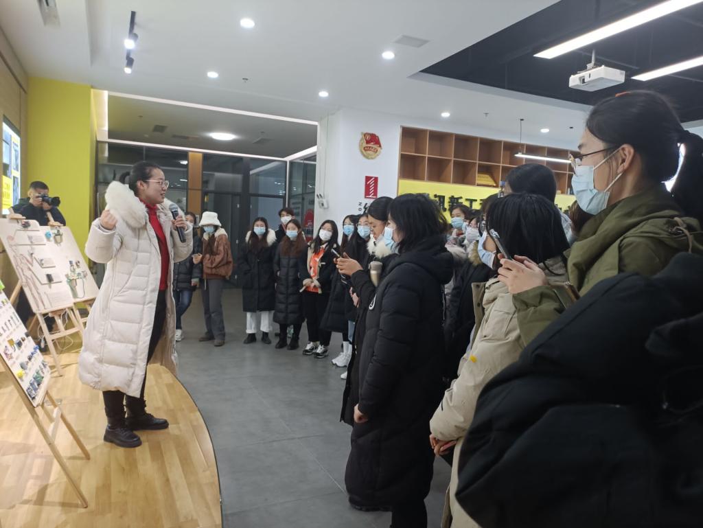 在工作人员的带领下,我院师生来到了腾讯烟台新工科研究院,参观了前端实验室和创客作品,进一步了解了该公司实战为主的人才培养模式,感受到了当下产学研相结合的产业发展态,并深刻认识到创新思维能力的重要性。在参观过程中,学生纷纷表示,要利用课余时间深研3D数字化设计、移动程序开发等技术,“磨好自己的刀”,提高自己的就业竞争力。经过工作人员的介绍,学院学生进一步加深了对教育技术学就业前景的认识,了解到当下教育技术学人才的行业空缺,从而提升了对未来就业的信心。