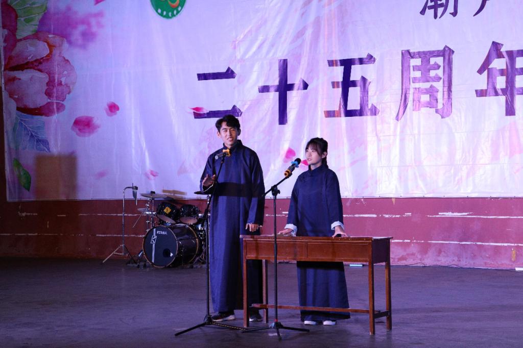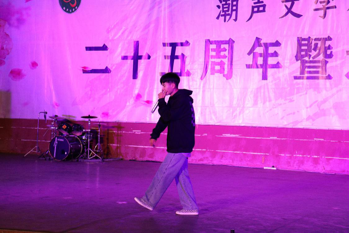 晚会上,潮声文学社社长鲁延灏为潮声文学社送上了二十五周岁生日蛋糕,现场进入互动环节,晚会气氛十分活跃。黄海影视剧社带来的话剧《从前有座山》,讲述了一个小和尚努力冲破封建禁锢,追求自身价值的感人故事,其动情的演绎令观者潸然泪下;古装舞《芒种》、小合唱《我》以及来自音乐学院的乐队表演,都令观众赞叹不已。最后,在潮声文学社社歌《潮呓》中,晚会落下帷幕。社团成员与全场观众一起合唱,为此次晚会画上了完美的句号。