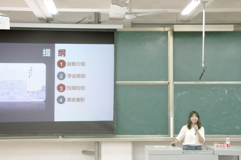 会议伊始,绪慧敏进行自我介绍,通过讲述自身在大学期间的经历,激励全体18级学生奋勇拼搏,劝诫18级学生妥善处理人际关系,珍惜大学时光。接着,绪慧敏对同学们的学业规划给予建议,要求同学们合理规划大学生活,及时做好考研准备工作,稳步推进学习计划的实施。随后,绪慧敏就校规校纪问题进行重点强调,对违章用电、宿舍晚归、饲养宠物、宿舍卫生等问题进行着重说明,并公示了违规违纪人员的处分标准。此外,绪慧敏就课余兼职问题发表意见,希望课余兼职的同学注意自身安全,平衡兼职与学习的关系,保护好自身权益。会议最后,绪慧敏介绍了评奖评优的流程与标准,要求同学们在日常生活中,注意礼貌问题,严格遵守课堂秩序。