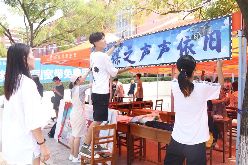 临时报道处,团委学生会各部门工作人员在此集合,开始迎新工作的各项准备,就搬运桌椅、布置场地、登记报到、宿舍分配、礼品发放等进行工作分配,使各部门尽快熟悉迎新准备工作流程。随后,麻豆视频av