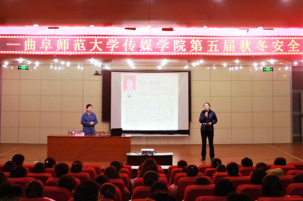 第五届秋冬安全月启动仪式正式开始。仪式开始,李兴保强调了安全教育的重要性。接着,张守荣介绍了系列活动内容,并由学生代表宣读了安全倡议书。随后,在张守荣的主持下,杨主任为同学们进行了大学生生理知识的讲解。杨主任首先介绍了从医期间的真实事例引出了“青年女性生殖健康与保健”的主题,然后用许多生动的案例从生殖系统基础知识、妇科常见疾病、流产、避孕、宫外孕,性传播疾病相关知识及预防措施等方面为同学们进行了详细讲解。