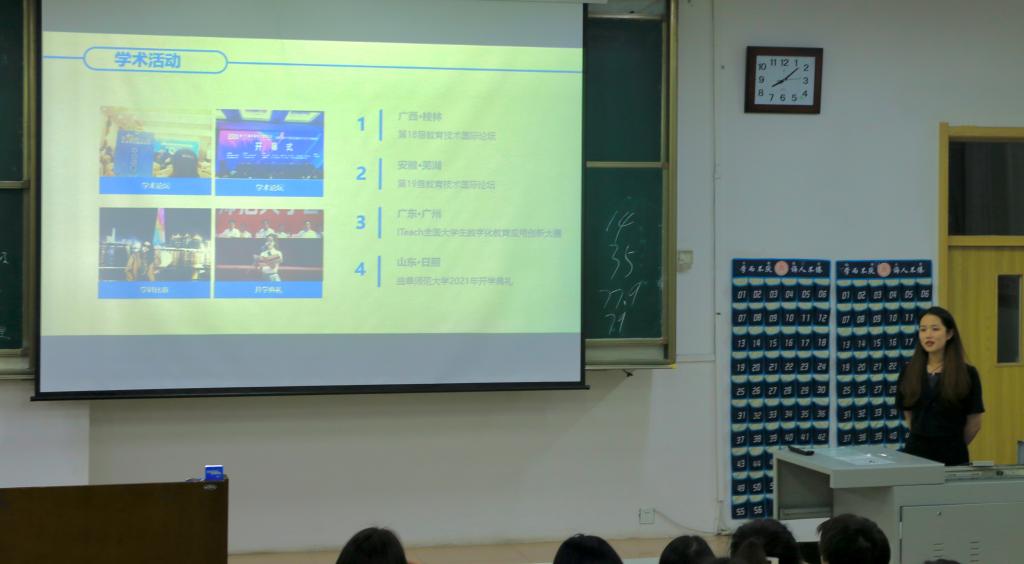 于JA106开展“大学生职业规划漫谈”活动。活动邀请我院2019级图书馆学研究生臧志栋、教育技术学研究生于英姿两位准博士生分享个人经验。2021级本科生和部分研究生参加活动,活动由辅导员张洪孟主持。