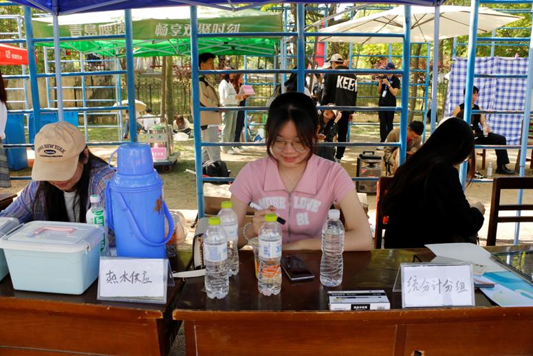 本次运动会中,由学院领导老师和团委学生会全体成员共同组成多个工作小组负责后勤保障工作。在老师的带领下,小组成员明确岗位工作职责,有序进行各项工作,统筹安排好相关事宜,确保比赛期间每个环节都有专人保障。在运动会过程中,后勤工作者们。积极为运动员服务,保障药品、矿泉水等必需品物资充足,随时准备应对紧急情况,及时搀扶不慎摔伤的运动员,为他们细心处理伤口,做运动员们坚强的后盾。