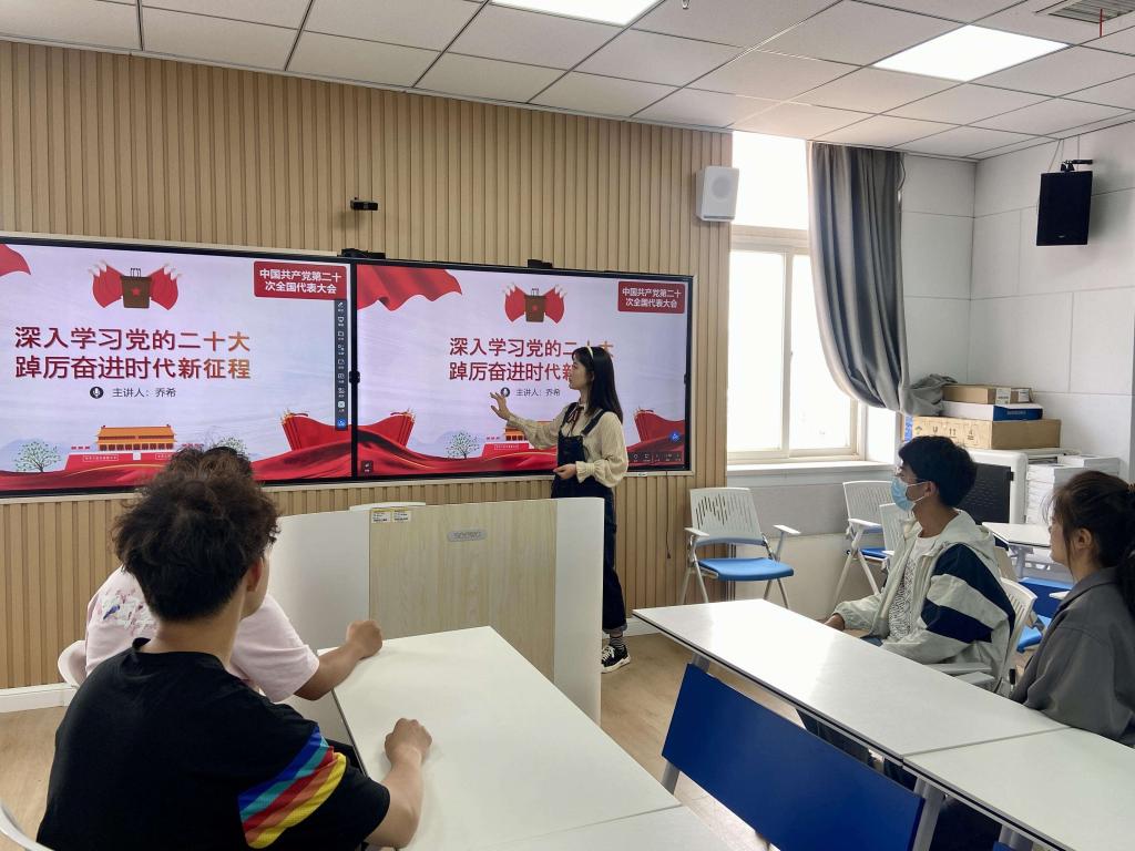 乔希以“深入学习党的二十大,踔厉奋进时代新征程”为题,将党的二十大精神与时代对新青年提出的要求深度融合。讲课过程中,乔希分别以“新时代的三件大事”、“对广大青年的几点建议”、“ 同学们对党的二十大精神的学习感悟”三个方面为切入点,重点分析了新时代新青年奋进新征程的应有姿态,要求党员们牢记习近平总书记嘱托,以志为先,以新为径,以苦为食,在新时代不懈奋斗,建功立业,诠释新使命,创造新业绩。