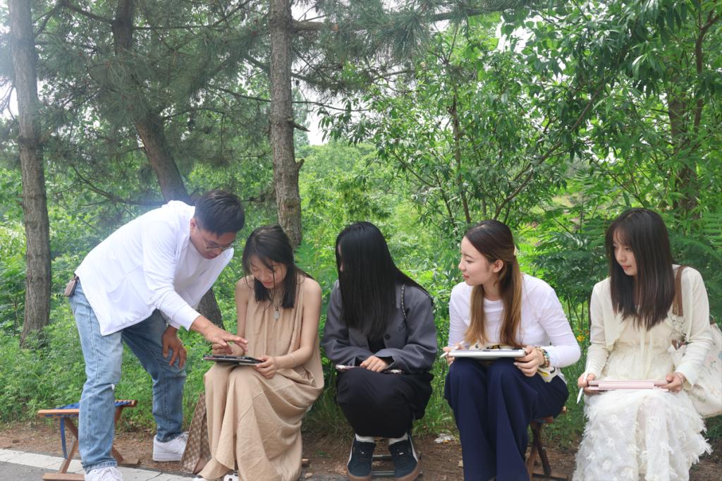 写生是数字媒体专业学生激发创作灵感的第二课堂和展示自我的重要平台。在学院教师带领下,本次写生实践活动分别前往了白鹭湾、五莲山、九仙山、大青山等风景区。走进自然,孔勇老师讲到,要加强心力、脑力、眼力、手力,做到用心感受、用脑创作、用眼发现、用笔记录。同学们席地而坐,手拿画笔,用全新的视角观察自然,并将课堂上学到的艺术理论运用到写生与创作当中。老师在过程中就写生与色彩画的特性、画面的构图与处理方面提供了指导和建议。写生结束后,老师带领同学们总结绘画经验并分享写生收获。同学们纷纷表示,写生在观察景物外形特征、大小比例、透视变化上的助益明显。