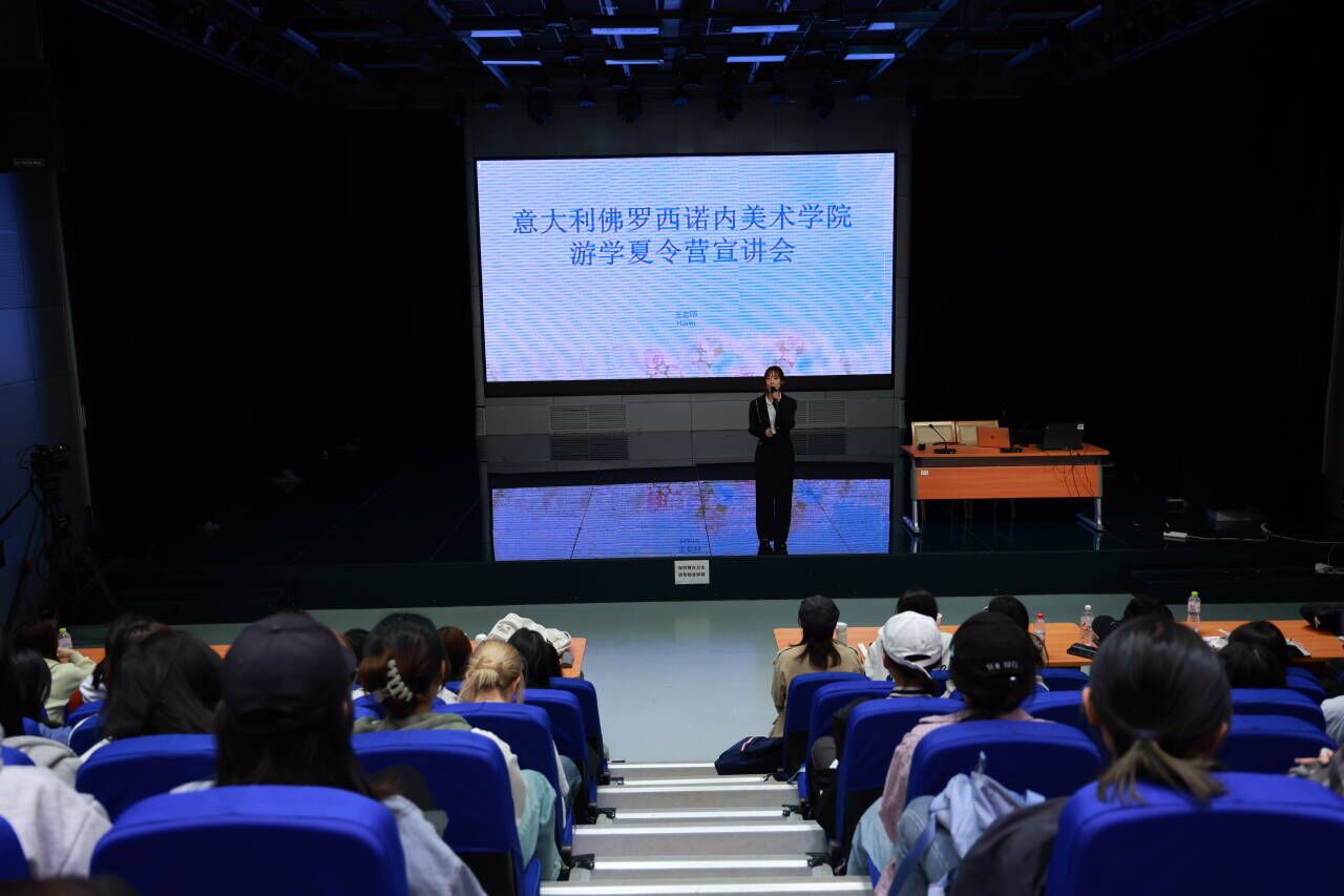 于JS434演播厅召开意大利佛罗西诺内美术学院游学夏令营宣讲会。意大利佛罗西诺内美术学院中方办公室王潆梓担任主讲,数字媒体艺术专业全体学生参与会议。会议由数字媒体艺术系副主任李海龙主持。