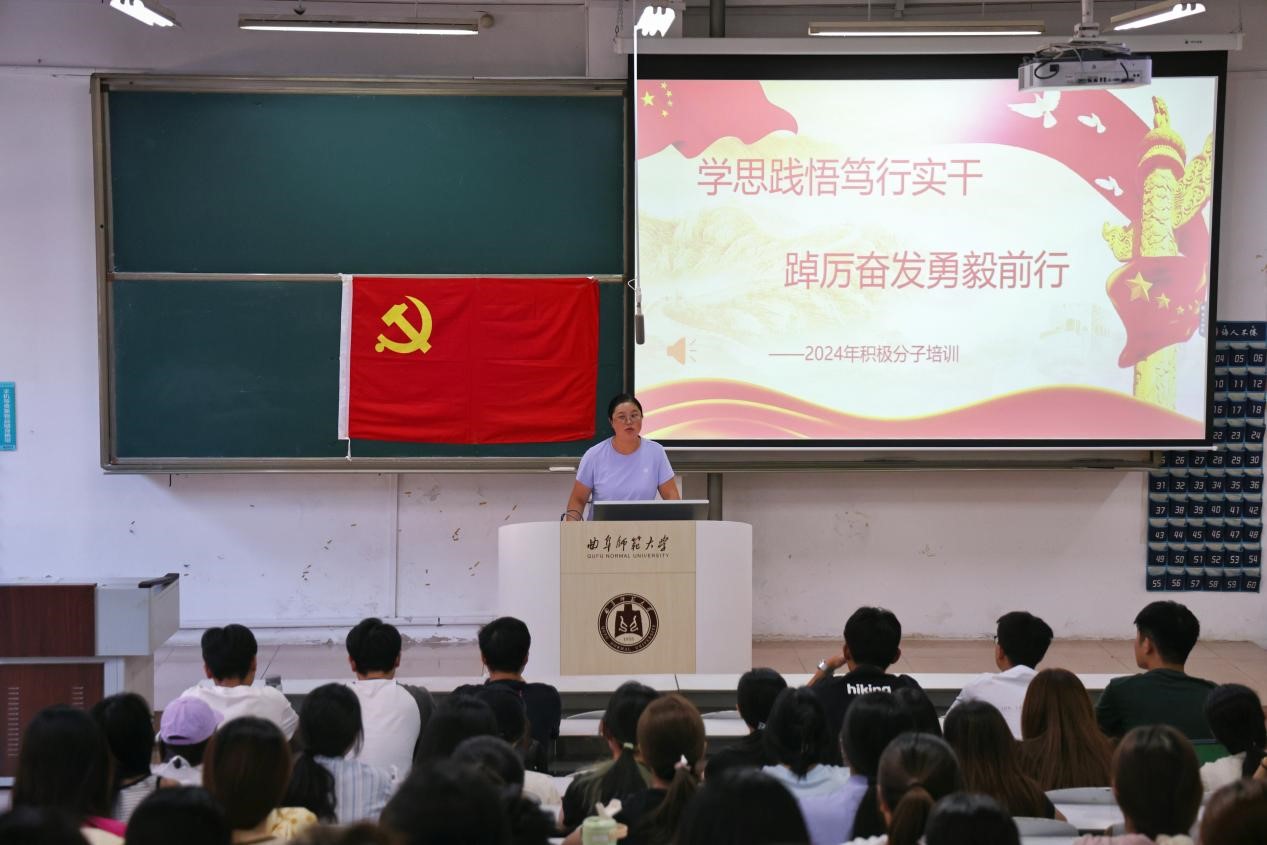 在JA103开展入党积极分子培训活动。会议由本科生第一党支部书记武莉华主讲,各个党支部书记和2024年入党积极分子参加。