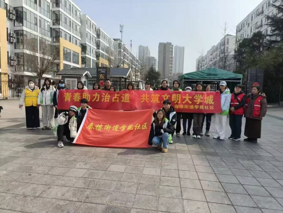 助力城市文明建设,解决大学城商户占道摆摊所引发的安全隐患,学苑社区于2月28日至3月3日开展了“以青春之力,筑文明之城”志愿活动。
