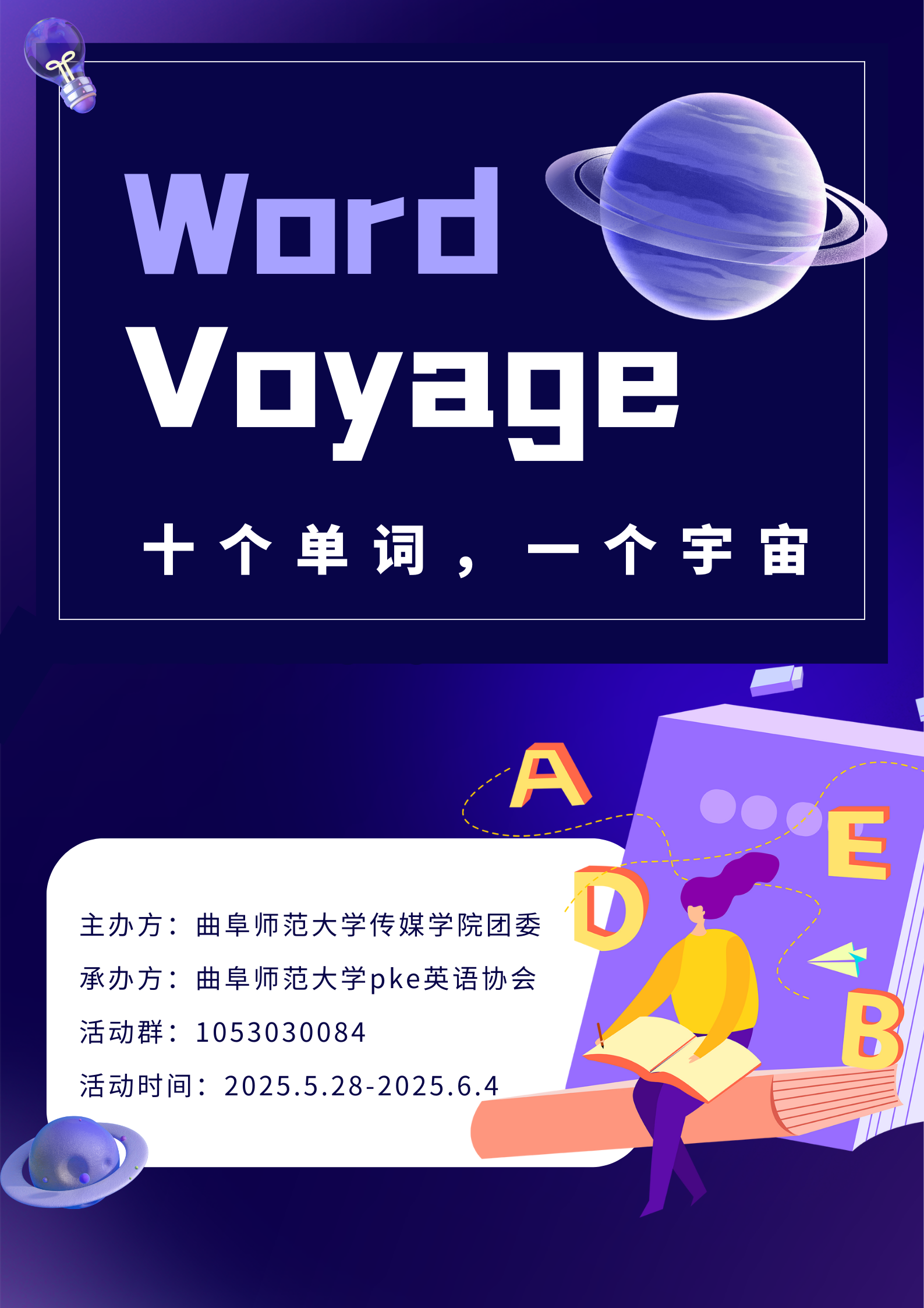 PKE英语协会于5月28日至6月4日成功举办“Word Voyage——十个单词,一个宇宙”创意单词故事创作活动,以趣味叙事形式激活词汇学习新动能。