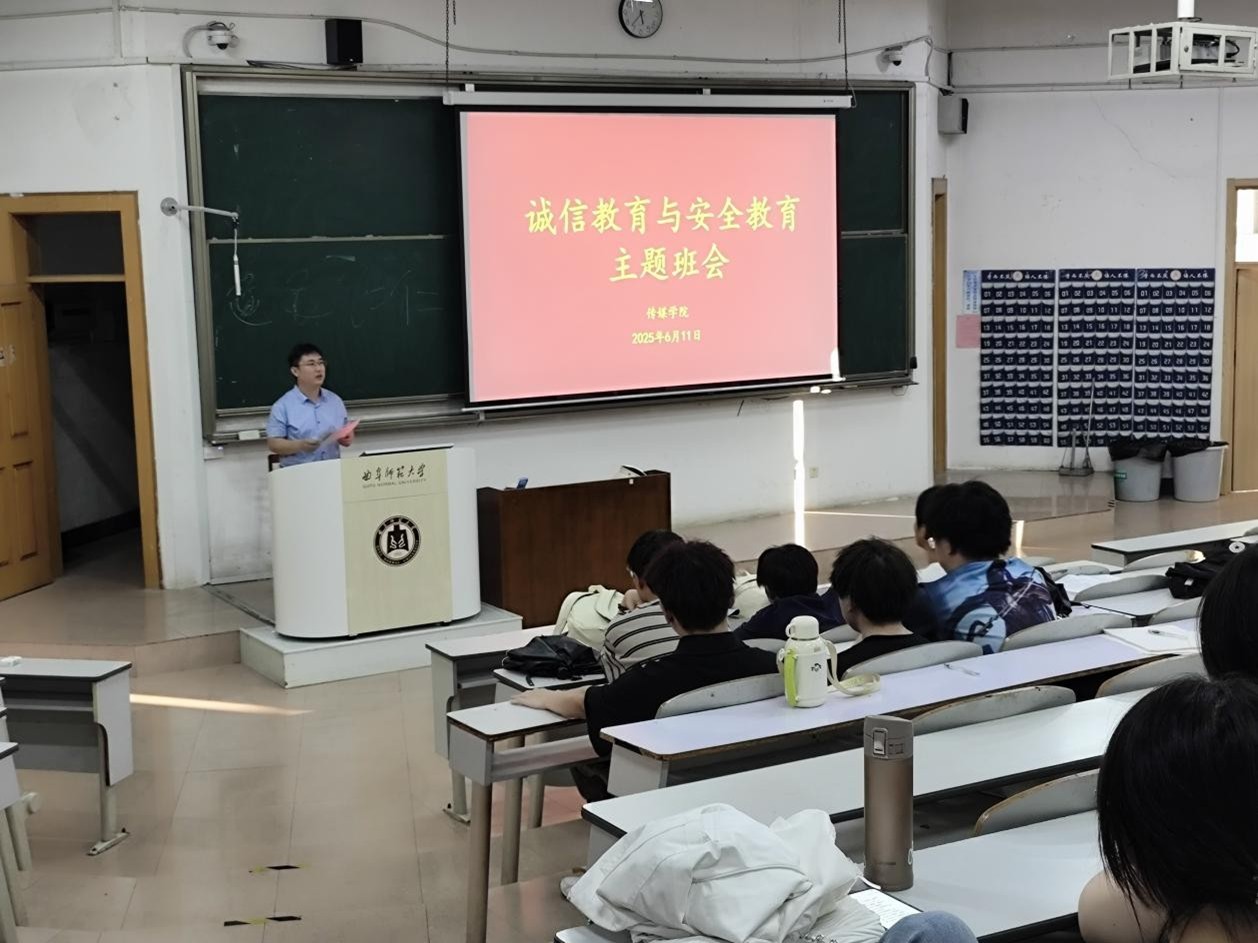 班会围绕“诚信”这一核心命题,聚焦“学术诚信、网络诚信、生活诚信”三方面展开,深入浅出地向同学们阐述了诚信的内涵与意义。辅导员们通过典型案例分析和互动讨论,提出了诚信缺失的危害及诚信待人的重要性。期末考试临近,辅导员们针对诚信考试,向同学们传达了《国家教育考试违规处理办法》第六条内容,明确了考试纪律的“红线”和“底线”,呼吁大家将诚信应考“内化于心、外化于行”,共同维护考试公平公正的环境。
