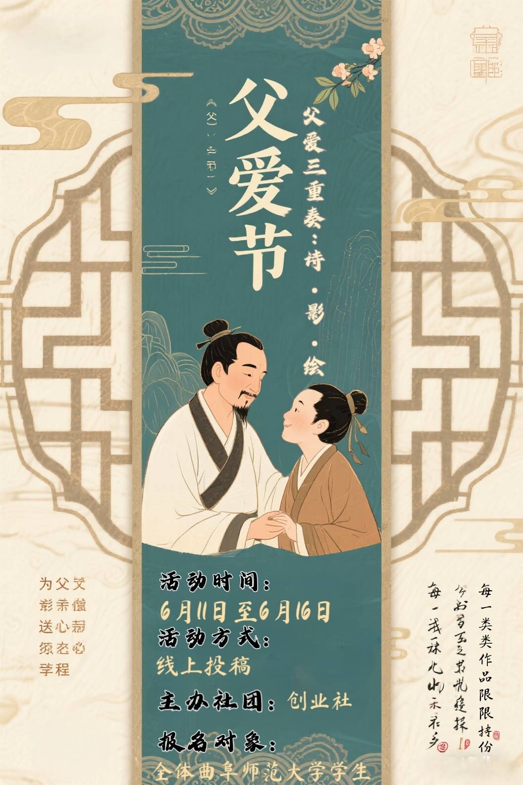 联合创业社举办了“父爱三重奏:诗•影•绘”父亲节主题活动。活动自6月11日启动,历时6天,面向全体麻豆视频av
