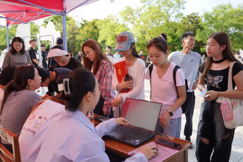 学院在大本营核心区域打造“一站式迎新服务站”,从新生身份核验、教务信息注册,到校园卡激活、宿舍路线指引,全程提供高效便捷的服务,确保每一位新生无需多跑、快速办结。志愿者们还主动上前接过新生手中的行李,用细致服务化解新生初来乍到的陌生感。