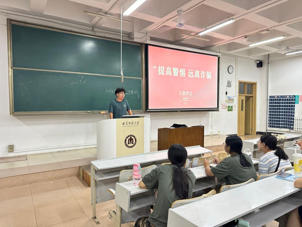 班会结合近年来高校高发的诈骗案例,向新生系统梳理了校园诈骗的常见类型,提醒同学们积极参加防诈安全知识宣传,自觉提高防范能力,最大限度地保障自己的人身财产安全。