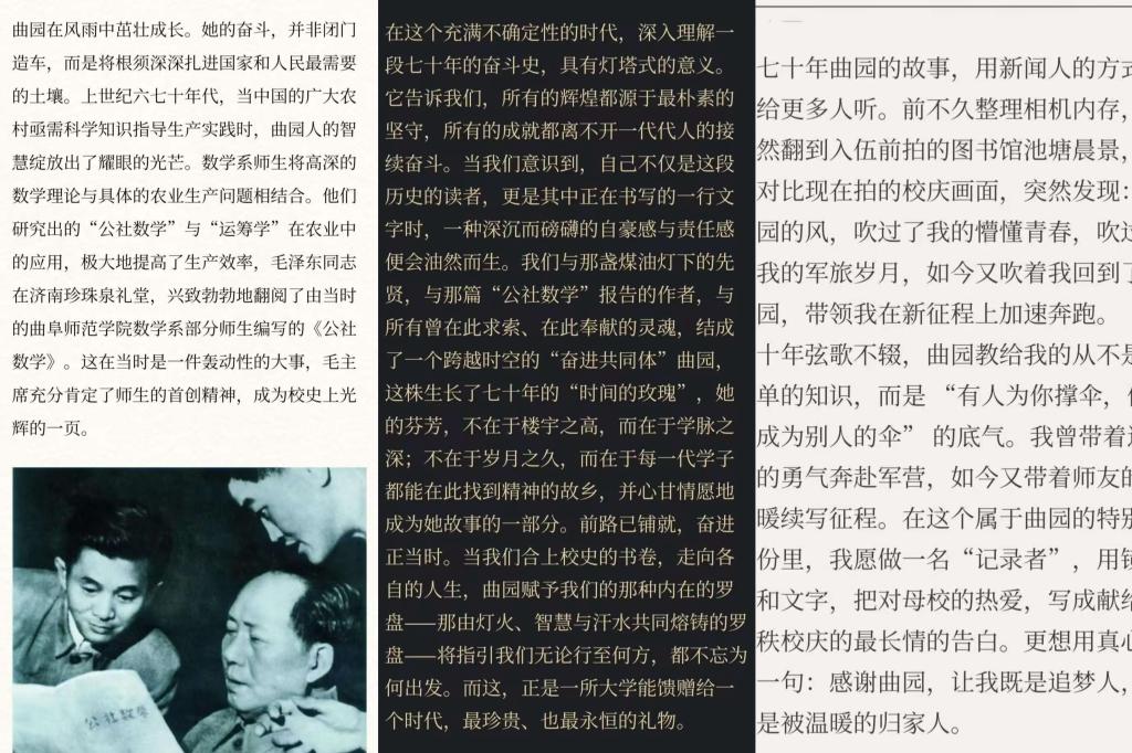此次征文不仅为校庆增添人文氛围,更将为后续学生携手助力学校发展、传承校园文化,奠定坚实的情感与认知基础,为学院凝聚师生力量、推动学科建设与人才培养激发内生动力,让七十年曲园精神在青春书写中焕发新活力。