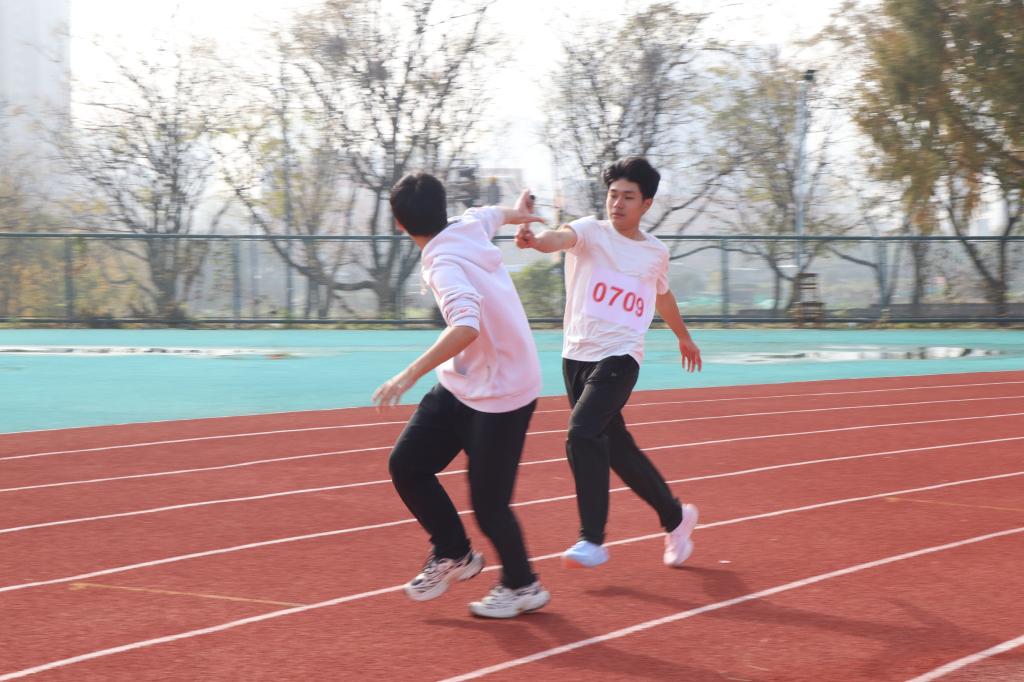 接力赛道上,选手们稳稳递出接力棒,两人指尖的触碰瞬间,是信任与配合的最好诠释,也让奔跑的节奏充满团队的力量。