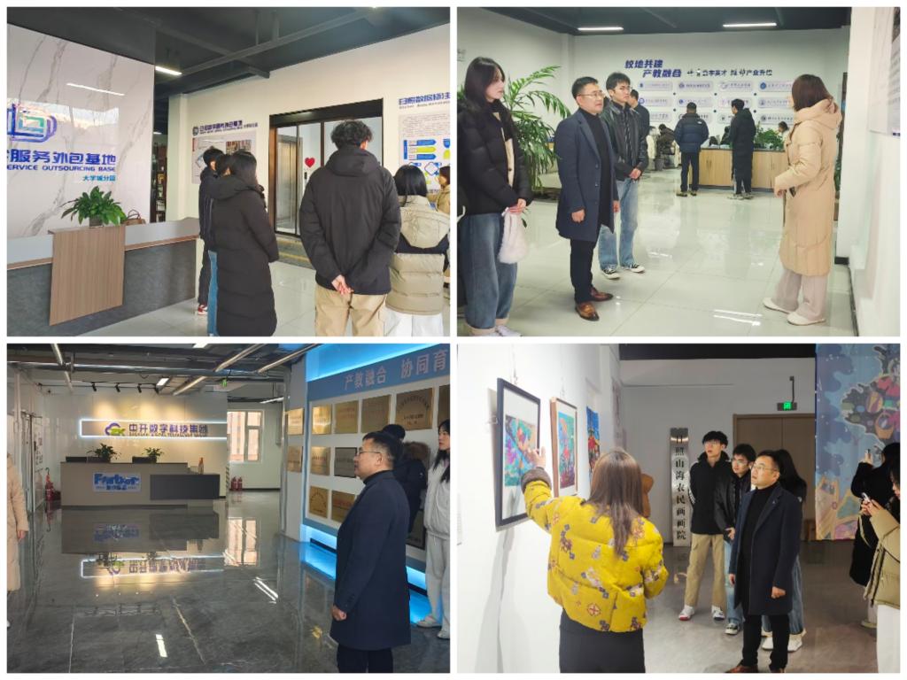 孔德刚一行先后实地参观考察了日照数字服务外包基地、日照山海农民画画院及相关产业园区,实地察看运营现状、文化建设成果及产业发展模式,深入了解行业发展趋势和岗位人才需求标准,沉浸式感受文化产业与教育教学结合的实践场景,为后续人才合作培养积累了一手实践素材。