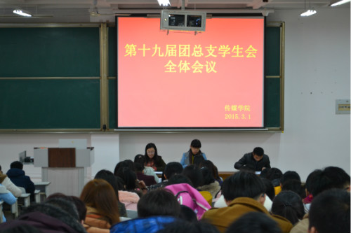 第十九届团总支学生会全体会议在JA105室召开。学院团总支书记刘蓉,团总支书记助理张亚楠,12级助理辅导员师衍辉出席本次会议。第十九届团总支学生会全体成员参加会议。