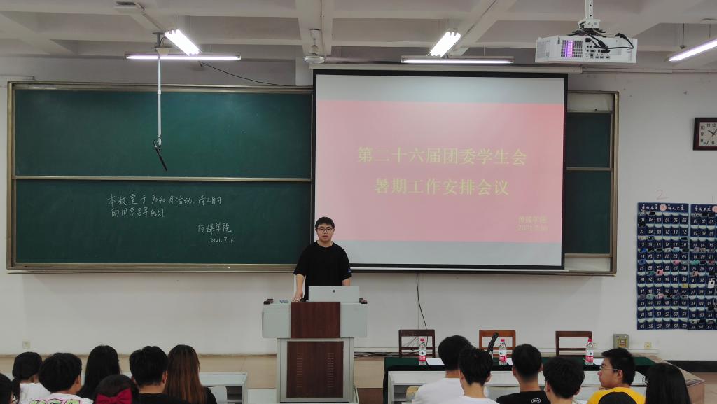 第二十六届团委学生会暑假工作安排会议于JA206顺利举行。学院本科生党支部书记张洪孟、19级辅导员乔希、20级辅导员商秀英以及全体学生会成员参加了本次会议。