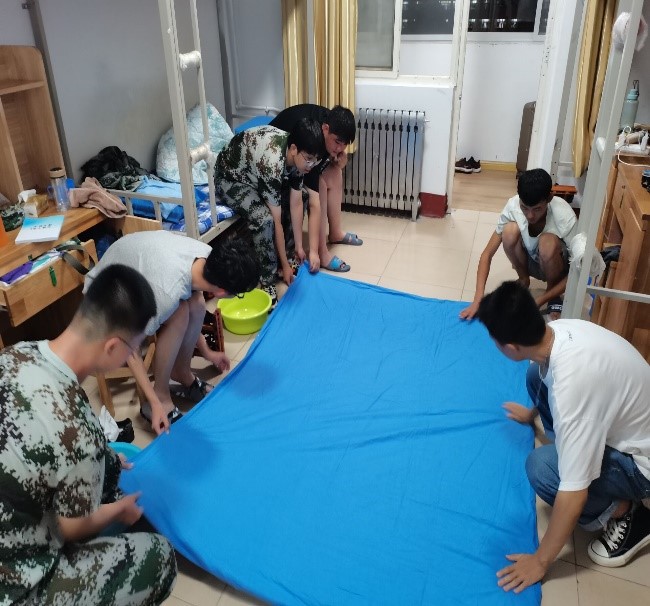组织20级学生在课余时间指导新生整理寝室内务。在宿管部的组织下,73名20级学生志愿者进入新生宿舍分别对其进行细心指导。