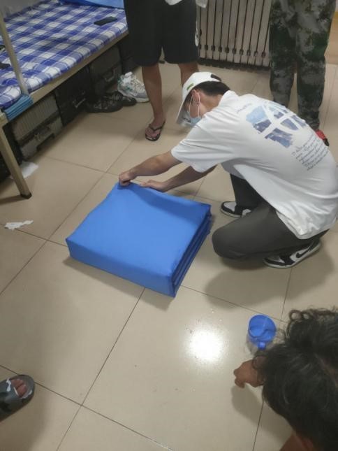 以宿舍为单位,本次内务指导活动采用一对一的形式,有利于使新生更快掌握内务整理要领。在宿舍里,志愿者们为新生演示了叠被子的几个步骤,并从被子的对折尺寸、折叠手法、掏平压实和如何叠出棱角等方面分别做了详细的示范和讲解。志愿者和新生们进行了热烈讨论,通过经验分享鼓励新生按照军训时间表规律作息,积极调整状态,认真完成内务整理工作。经过学习,21级新闻一班的熊惠表示:“师哥师姐的经验使我受益匪浅,让我更加坚定地以高标准要求自己,磨练吃苦耐劳的意志,更好地适应大学生活。”