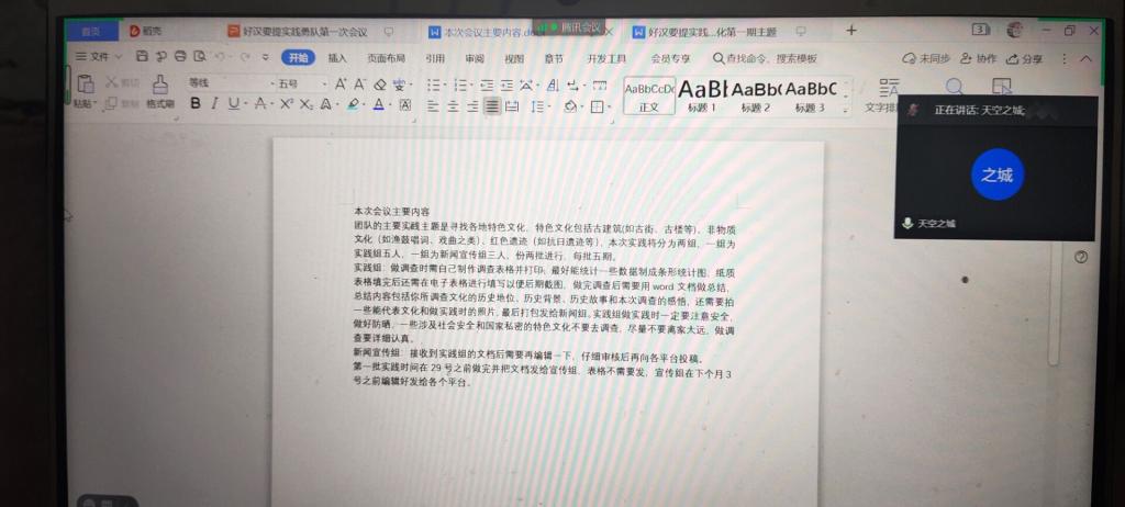 好汉要提实践勇队举行了第一次线上会议,八位成员悉数参加。会议主要围绕任务分工、实践形式等内容展开,大家各自发表意见、阐述想法,提出实践过程中可能遇到的问题共同商讨。