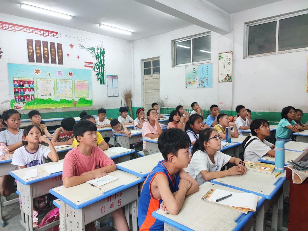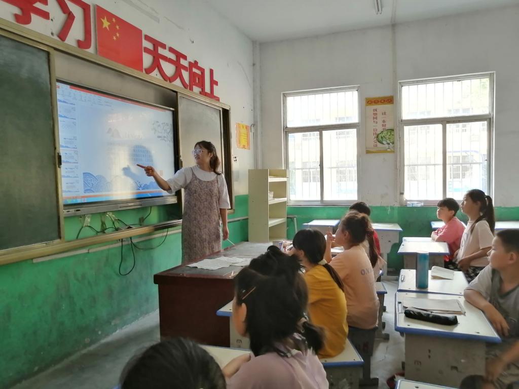 志愿队队长邹帆帆表示:“在志愿服务期间,将会进行普通话推广专项活动,加强国家通用语言文字教育,同时为学生们带来党史讲解、安全自护、文明礼仪等一系列丰富多彩的课程,帮助孩子们学习普通话,领悟红色文化,获得知识,健康成长。”会议结束后,“推普助兴我在行”实践活动就正式开始了,志愿者们纷纷投入到授课之中,鼓励孩子们用普通话做自我介绍来展示自我,并依次介绍了授课内容。
