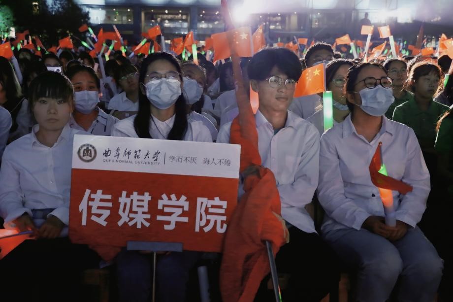 汇演在主持人的贺词中拉开帷幕。演出中,传媒院师生团队分别演唱了《在灿烂阳光下》、《同心共筑中国梦》两首歌曲。歌词语言质朴,展现了中国共产党成立100周年的辉煌历程;歌声嘹亮动听,唱出了中国共产党百年的坚苦卓绝与不懈追求,表达了对党的祝福,点燃了观众的爱国爱党情怀。激情飞扬的歌声透过麦克风传到每个人的耳里,鼓动着每一个人的心,激励着全体师生不忘初心,牢记使命,为实现新时代中华民族伟大复兴的中国梦而不懈奋斗。