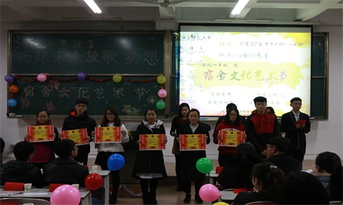 为“宿舍个性照”、“宿舍公约”、“宿舍装饰”、“宿舍才艺”获奖者颁发了奖状。宿舍文化艺术节自开幕以来,收到了传媒学子的广泛关注,各宿舍积极参与、精心准备。本次活动不仅一展传媒风采,更有利于营造温馨和谐的学习、生活环境,对增进同学间的友谊,增强宿舍凝聚力有重要作用。