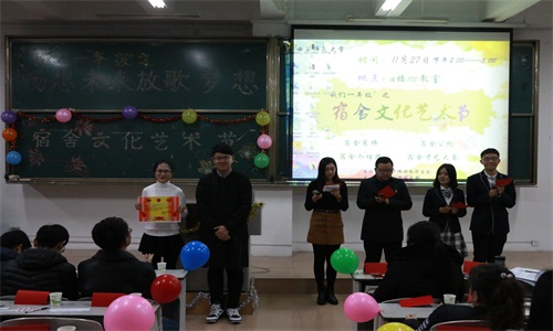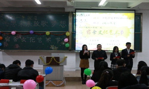 举办了“畅想未来,放歌梦想”宿舍文化艺术节系列活动。11月27号下午14:00,宿舍文化艺术节总决赛在A105顺利举行。翻译学院、工学院、音乐学院、马克思主义学部等各学院宿管部部长,麻豆视频av