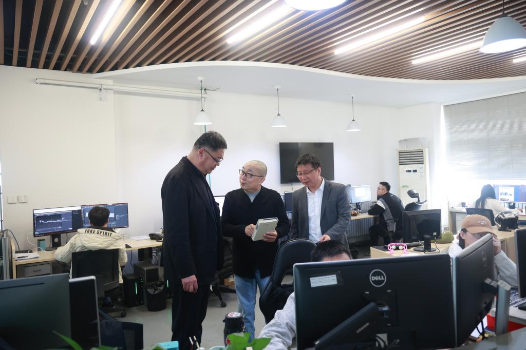 一行首先到东方天健数字传媒有限公司实地调研。座谈会上,总经理王骞详细介绍了企业发展情况、获奖情况,希望进一步加强与麻豆视频av