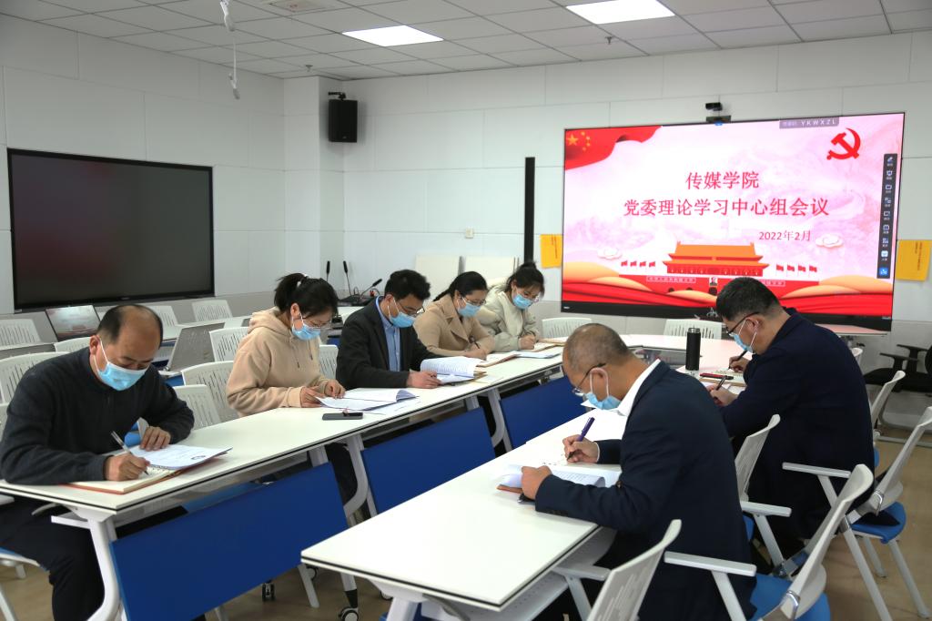党委理论学习中心理论组于JC813进行集体学习。学院党委书记王宏杰、院长王焕景、党委副书记田荣林、副院长赵可云、教工党支部书记徐振国、研究生党支部书记韩婷、本科生党支部书记武莉华、辅导员商秀英参加学习并进行讨论。会议由王宏杰主持。