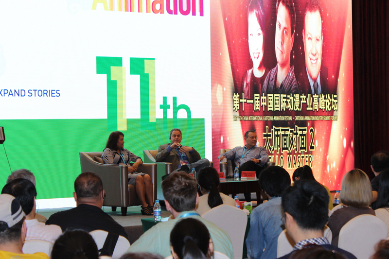 4月30日上午,考察小组参加了在杭州建国饭店举办的“第十一届国际动漫产业高峰论坛”,聆听了国际知名动画大师约书亚·西蒙、森德·施华兹等人的精彩报告,并围绕“动漫故事的挖掘与延展”这一主题,与美国小飞机动画制作公司总裁约书亚·西蒙等人进行了面对面交流与研讨。