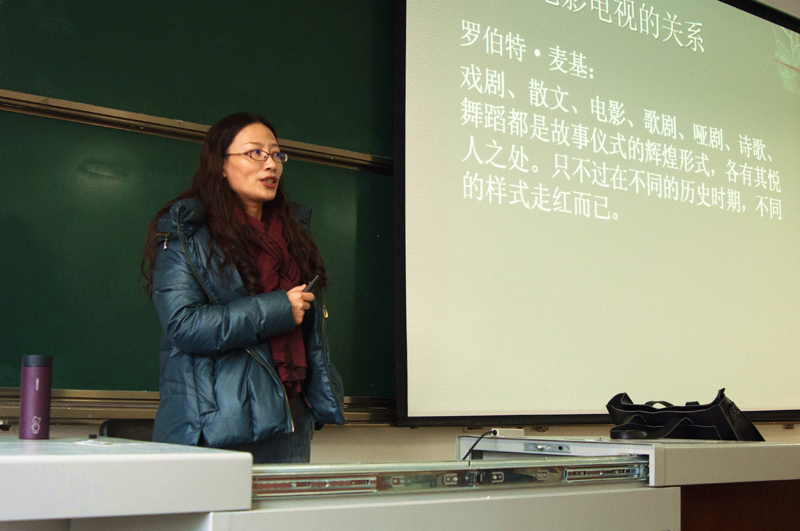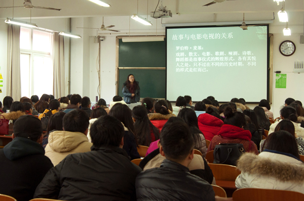 刘聪教授是我校文学院教授、山东省影视传媒集团签约编制,在影视编剧领域中具有独特的建树,她的作品《瞧这两家子》、《纸婚》在央视电视剧频道黄金时段播出。刘聪教授的讲座涵盖文学、哲学和戏剧影视学的相关理论,其精彩的学术讲座、宽广的学术视野和优雅的人格魅力博得同学和老师的热烈欢迎。这次讲座使同学们受益匪浅。