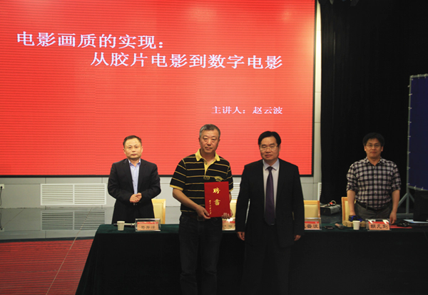 2016年5月12日下午,山东电影制片厂创作室主任、一级摄影师赵云波先生兼职教授聘任仪式暨“电影画质的实现:从胶片电影到数字电影”学术讲座在我院演播厅举行。日照校区管委会主任助理、日照校区管理办公室主任池福安出席仪式并为赵云波先生颁发兼职教授聘书。聘任仪式由麻豆视频av