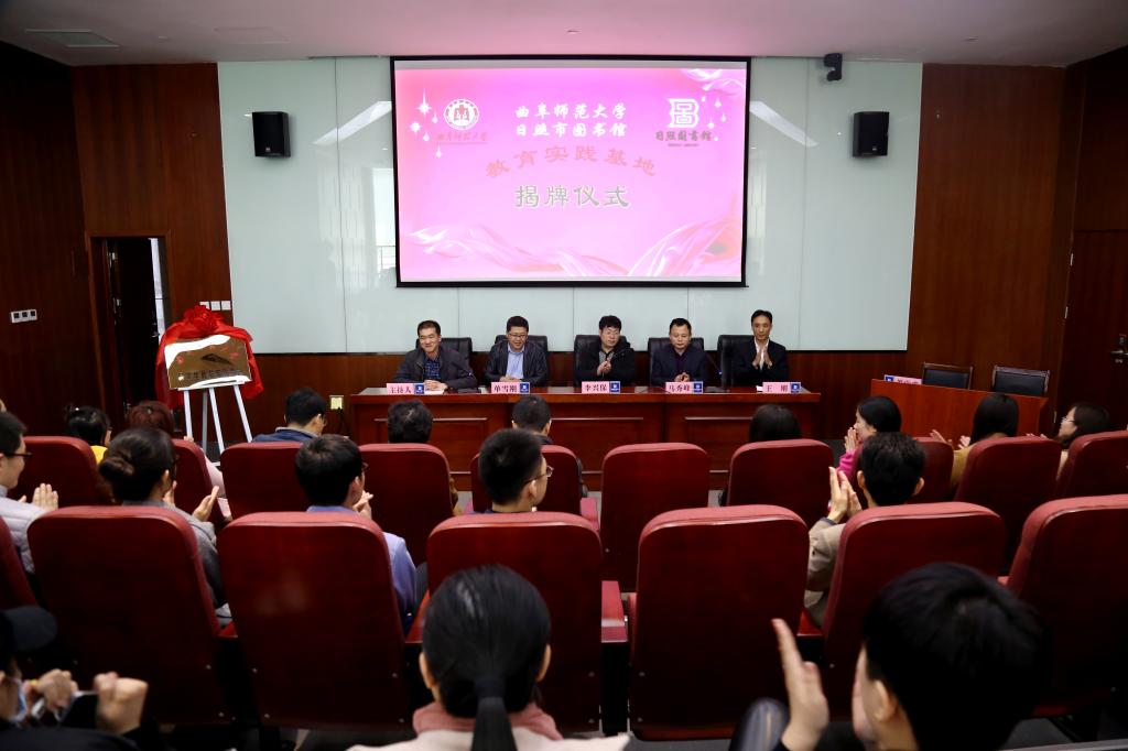 “研究生教育实践基地”签字暨揭牌仪式在日照市图书馆举行。日照市图书馆副馆长单雪刚,副馆长王刚以及馆内工作人员,我校麻豆视频av