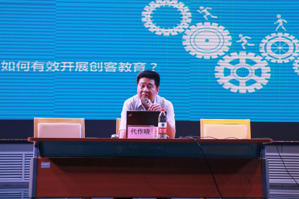 代作晓教授自2012年起参与技术成果转化工作,带领团队在智能制造、大学生创新创业实践以及中小学创客教育等方面开展了富有成效的工作。报告中,代作晓教授介绍了创客教育的内涵,即培养学习者创新、创业所需知识、能力、视野以及意志品质方面的教育行为,并结合美国的“车库文化”讲述了创客教育的精髓。代作晓教授指出,创客教育的显著优势在于其更加注重学生的兴趣以及素养启发,弥补了传统教育在培养兴趣和动手能力方面的缺失。代作晓教授结合创客教育的特点,在理论基础、教育方式以及具体实施的环节等方面分析了应如何开展创客教育。他提出,创客教育的开展应在理论的基础上进一步探索和创新,教育者可通过将青少年带入动手环节,基于兴趣来开展创客教育。同时,他强调,在跨学科教学的基础上组建“项目制”创客教育,将其分为校内校外两部分,并且在老师和学生、学生和学生之间建立桥梁,对提高团队协作和解决问题的能力很有必要。