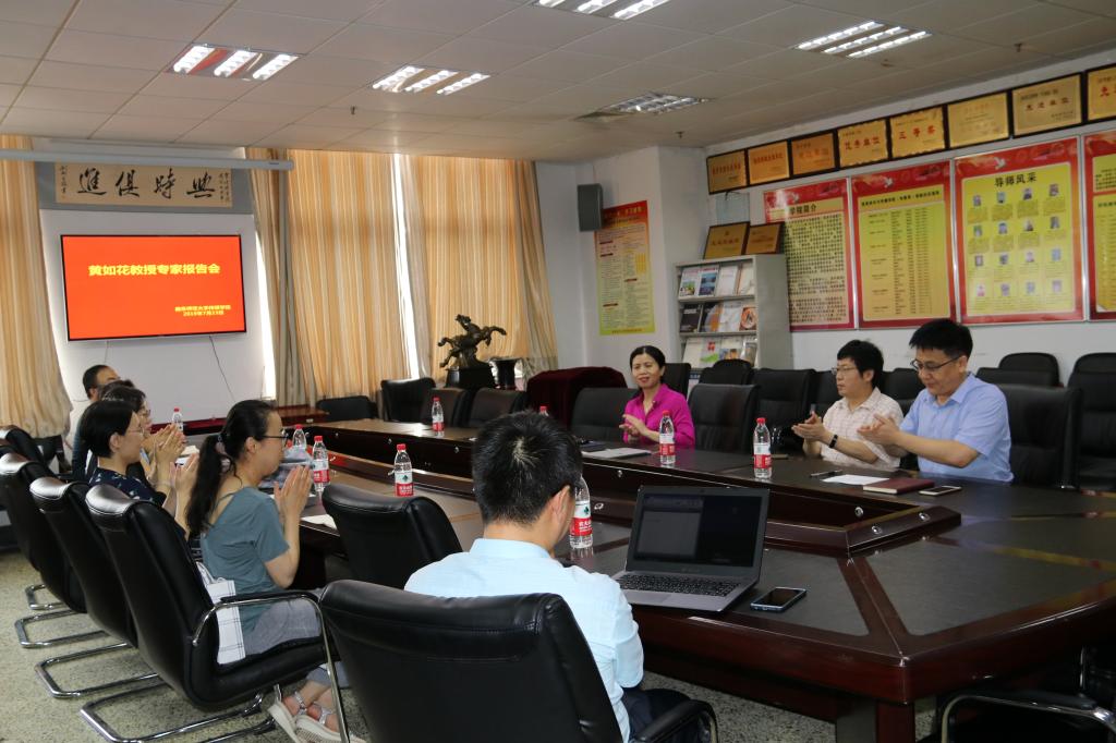 2019年7月24日上午8:30,学院邀请武汉大学信息资源管理学院黄如花教授作学术报告,学院领导、图书馆学及相关专业教师和研究生参加了报告会。